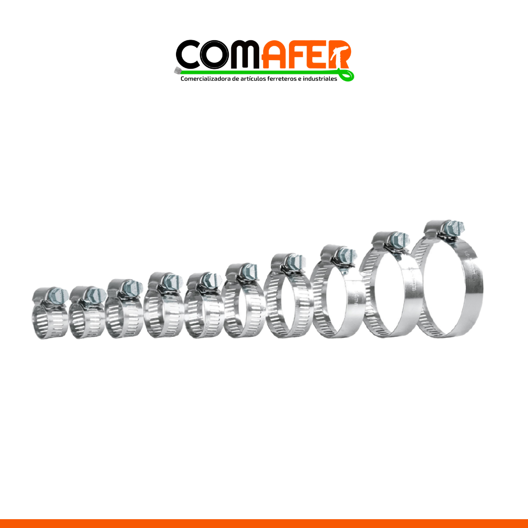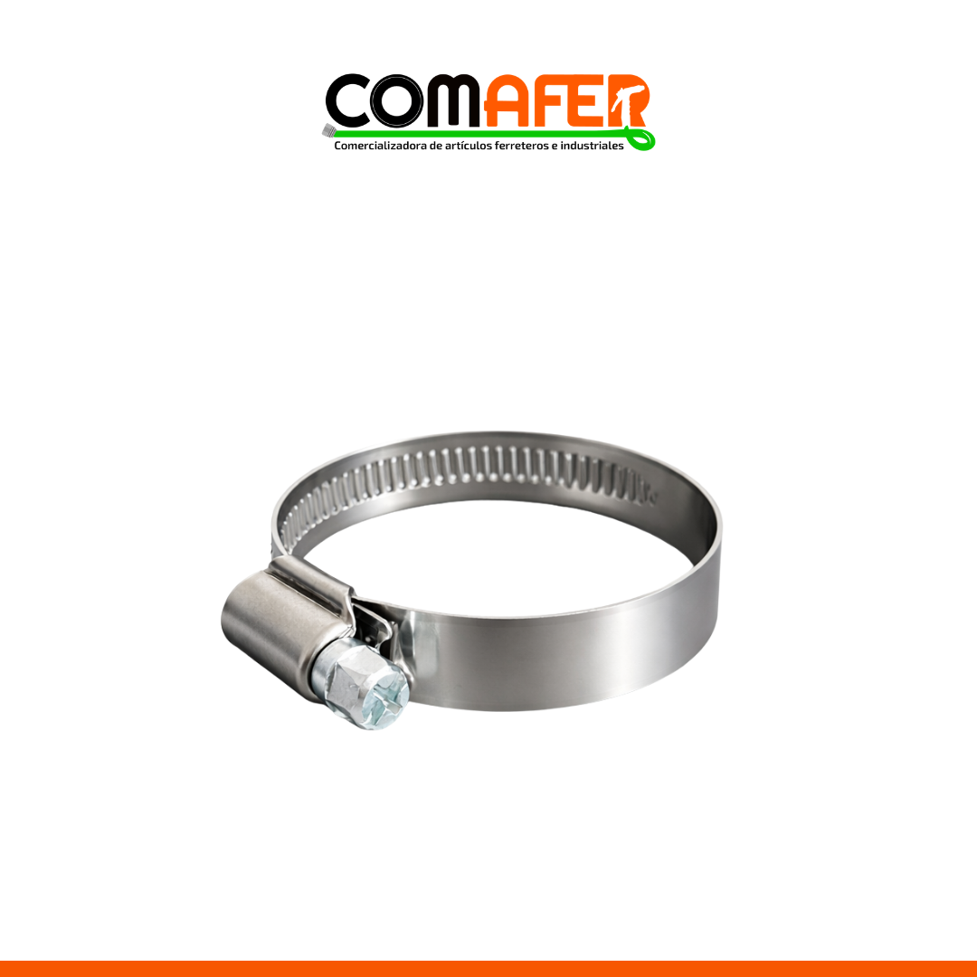 - Abrazadera Mixta Tipo Alemán: Diseñada para un mayor torque. Fabricada con banda de acero inoxidable y diseño no perforado. Su sistema de alto relieve permite un ajuste superior con mayor capacidad de torque, garantizando un sellado hermético y seguro sin comprometer la vida útil de la manguera.