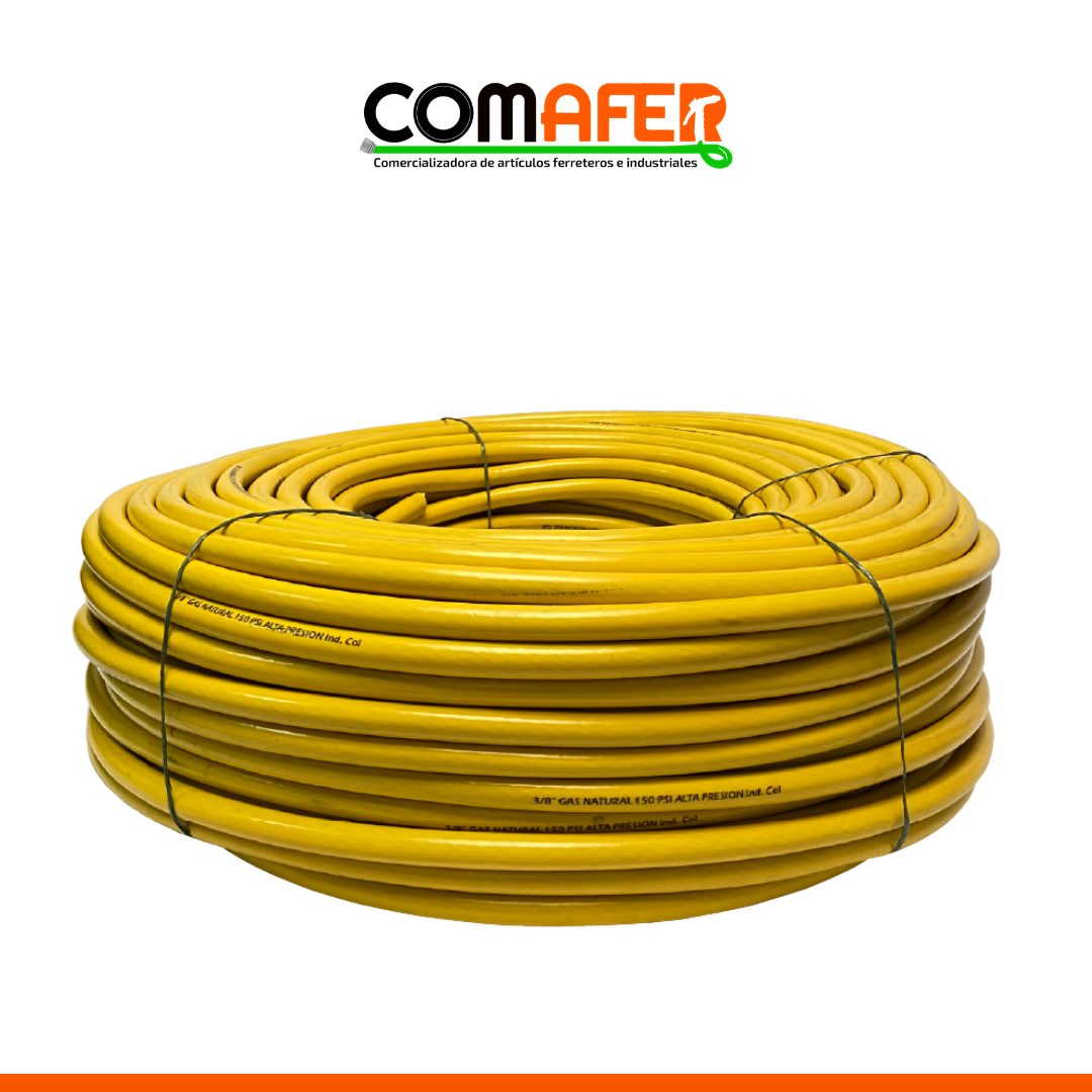 - Nuestra manguera para gas, viene disponible en color naranja para gas propano o amarillo para gas natural y con un diametro de 3/8" o 9.5mm.